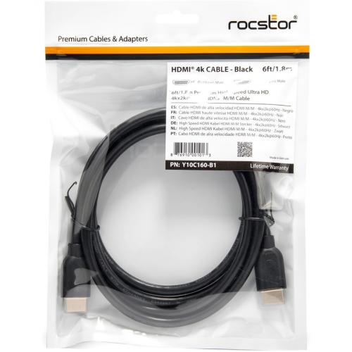 Rocstor's Premium 6 ft (2m) High Speed HDMI® 2.0 Cable is designed to deliver the maximum high definition experience to your HDTV supporting 4Kx2K @ 60Hz with resolutions of up to 3840x2160 at bandwidths of up to 18Gbps. Designed with the highest Gold plated connector quality, this HDMI 2.0 cable is designed to connect cable boxes, satellite receivers, Blu-ray players, streaming devices, computers, projectors, and game consoles to your flat panel TV. Rocstor HDMI® 2.0 cable has the latest HDMI resolutions standards and it is designed to support today's advanced electronics utilizing High Speed (category 2) HDMI with Ethernet. It supports up to 18.2 Gbps bandwidth. You will experience a crisp and clear picture with no lag time on any of our digital video equipment. Experience full 4K 2060p resolution. Backwards compatible with all previous versions, it supports today's 3D capable devices for a true movie theater experience. High-Definition Multimedia Interface (HDMI®) enables the delivery of both high-definition video and multichannel, digital audio quality through just one cable. Rocstor's HDMI® 2.0 Audio Video Cables deliver the richest possible HD video and digital audio experience to your home theater. Use your Rocstor premium cable Worry free which is backed by Lifetime Limited Warranty.