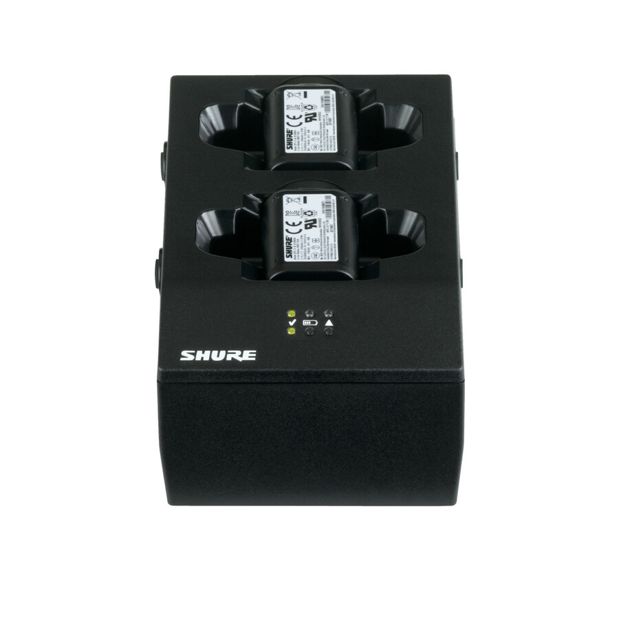 Dual docking recharging station charges SB900A batteries in or out of their transmitters. Features include the ability to run up to 4 SBC200 stations off 1 power supply.