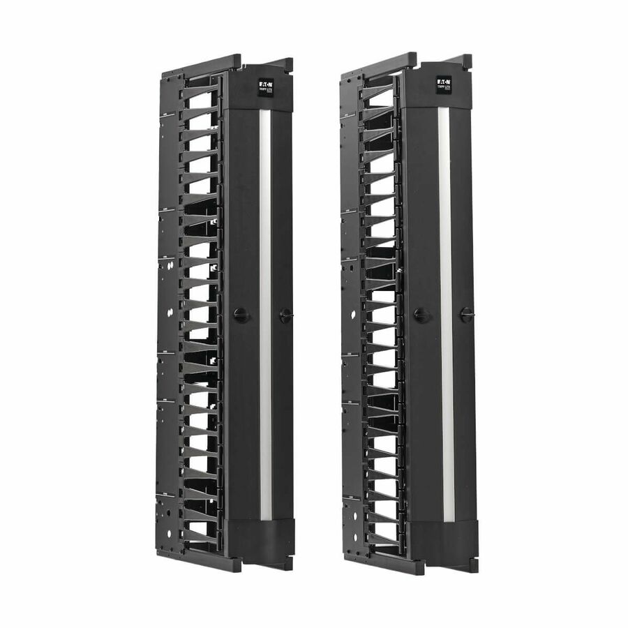 - Vertical fiber cable manager routes and organizes network cabling through your open frame rack while maintaining proper bend radius