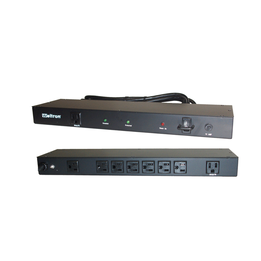 Nine Outlet Rack Mount Power Strip w/ 15ft Cord. This Power Strip is perfect for any 19" rack and has EMI/RFI noise filtering and full 3 line Surge Protection. Includes protection of 2450 Joules and LED Surge/Ground indicators. Easily mounts on or under any desk also.